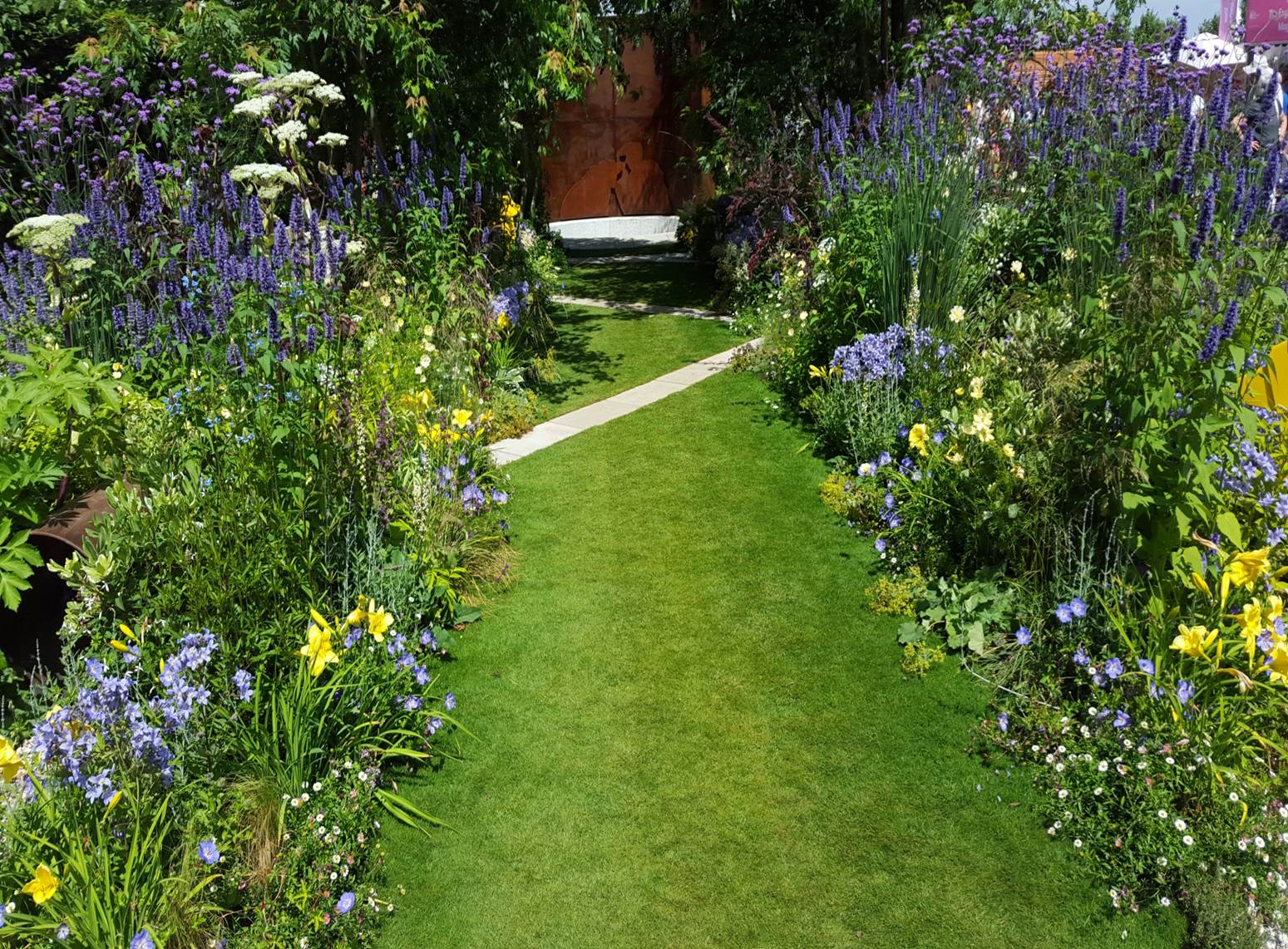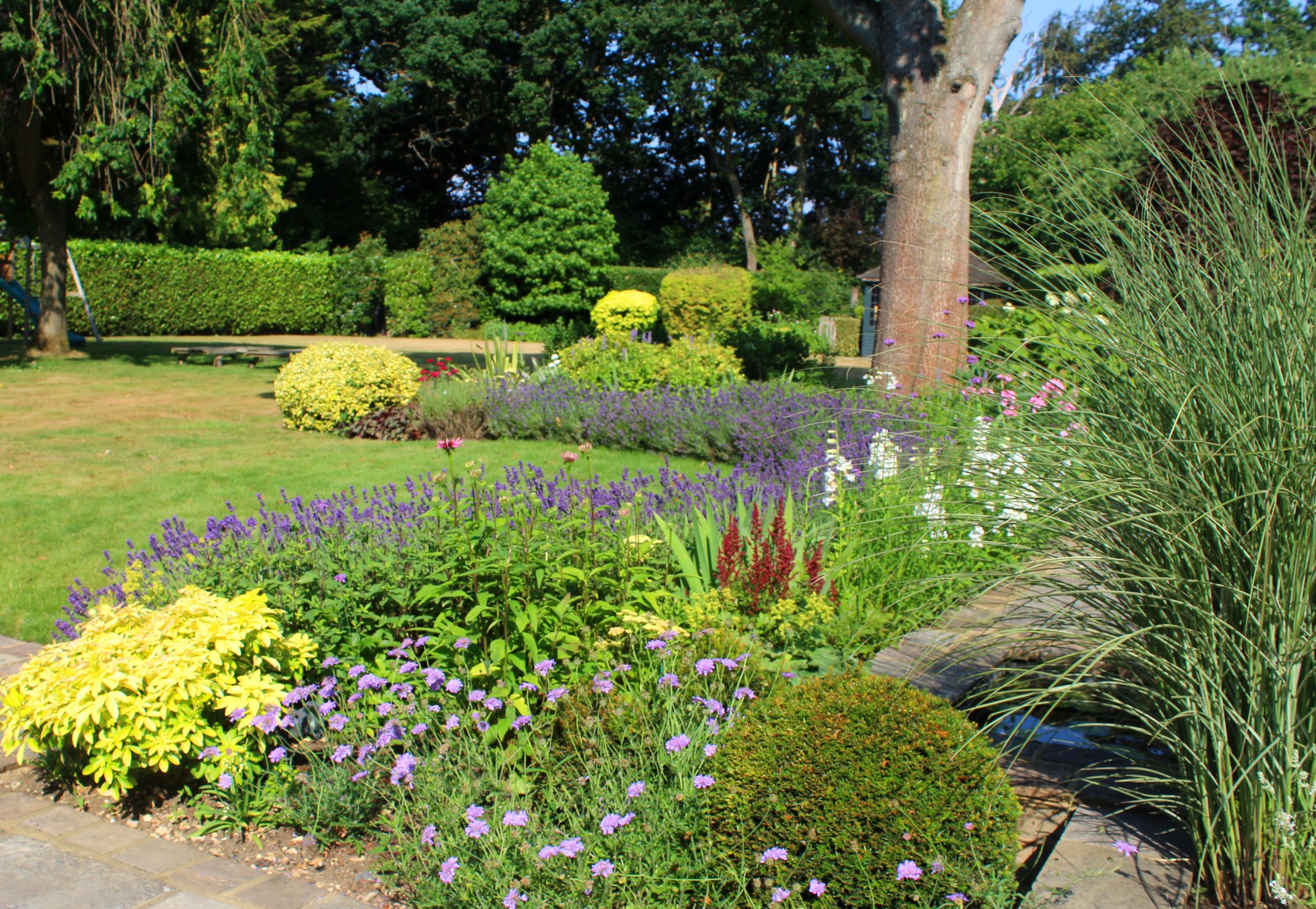 Unter romantische, bunte Gärten stellt man sich den klassischen Englischen Garten mit den lebendigen farbsensiblen Staudenbeeten, die allerdings auch in klaren Formen angelegt werden und innerhalb diesen sich Stauden, Gräser und Zwergsträucher spielerisch tanzend verhalten dürfen, vor. Die Wegeführung ist meist geschwungen. Der Garten sorgt mit angeordneten Blickachsen immer wieder für Überraschungen.